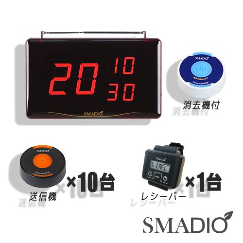 新しい呼び出しシステム『スマジオ/SMADIO』のお得な送信機30台セットに、便利な腕時計型レシーバーユニット5台をお付けしたお得なセットです!
